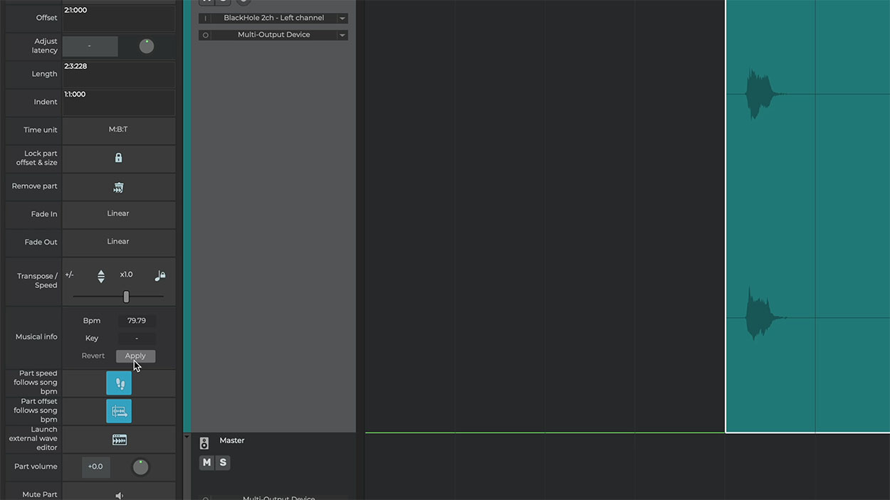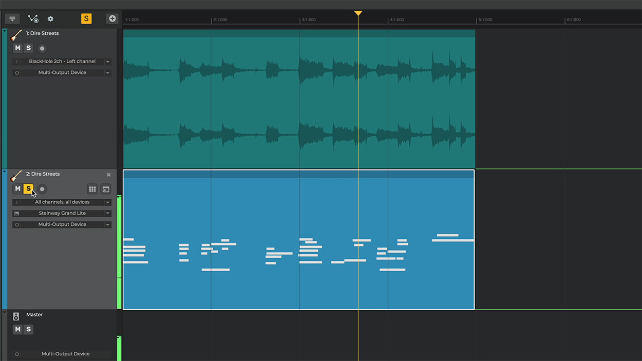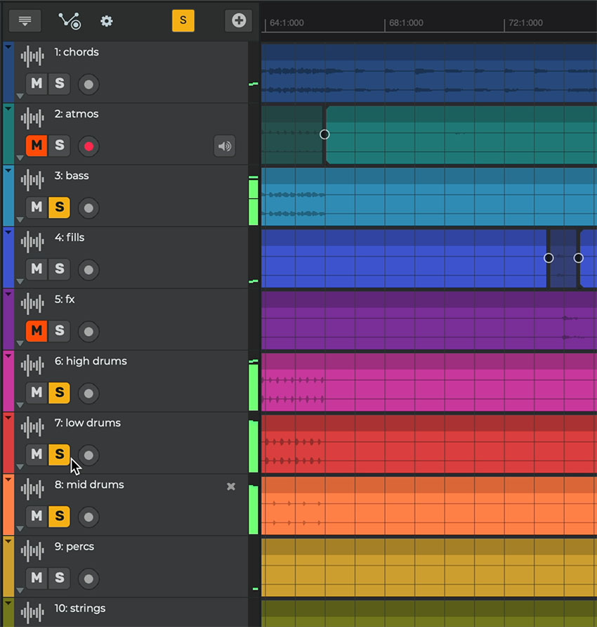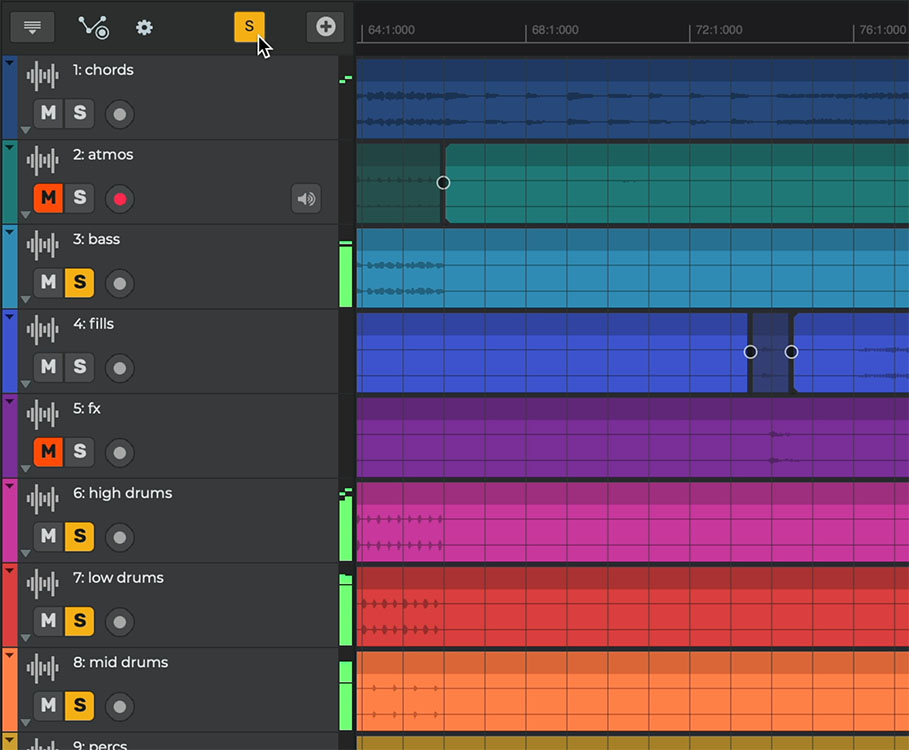 Add and record as many tracks as you wish. Edit tracks by time-stretching, looping, trimming, moving, reversing and crossfading audio and MIDI parts. Create arrangements in minutes, and have total control on your song's parts and overall structure.