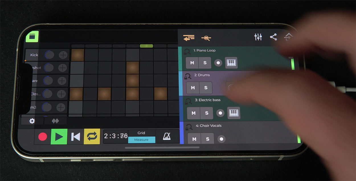 You can easily create drum and musical loops using the widgets on audio and MIDI files, or using step sequencing. Play in your beat with external controllers, use the n-Track Drums drum machine plugin, or use the on-screen Drums controller.