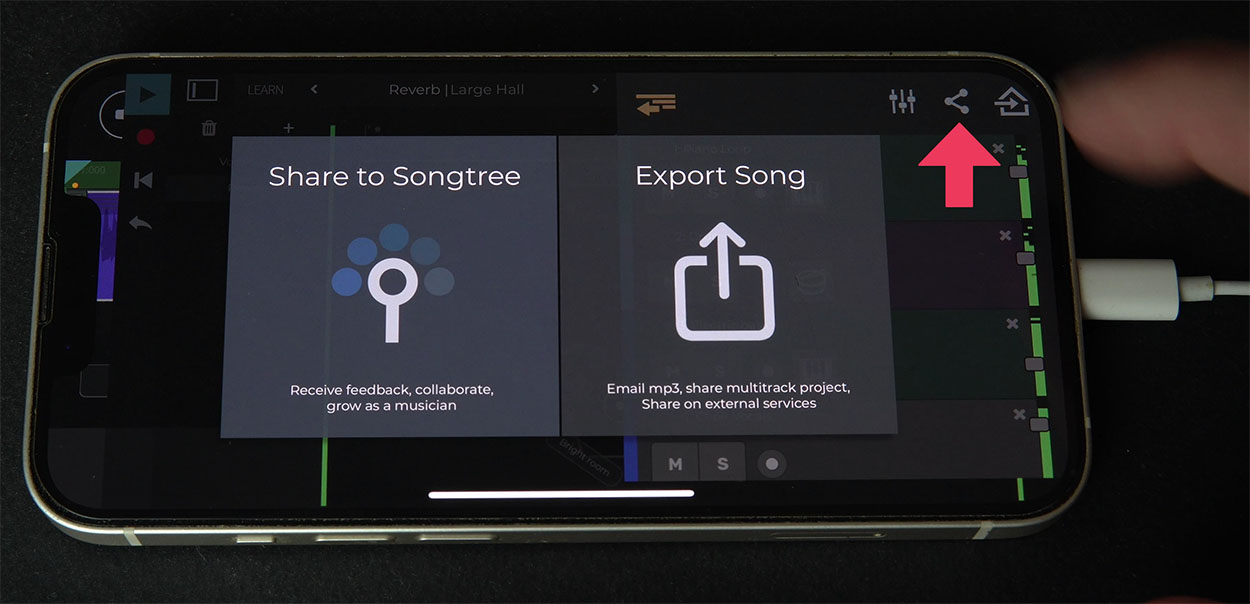 • select n-Track Studio Pro as the app to share the song with